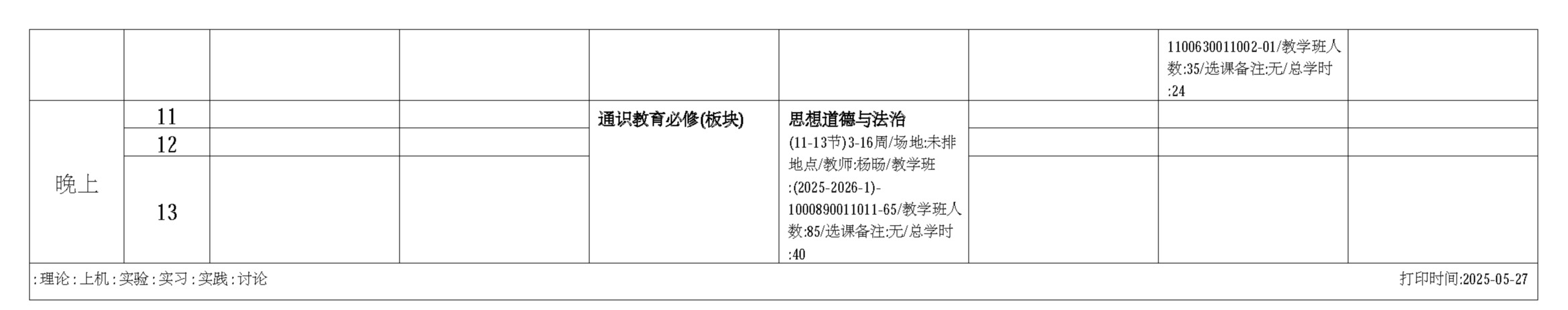 实验课表