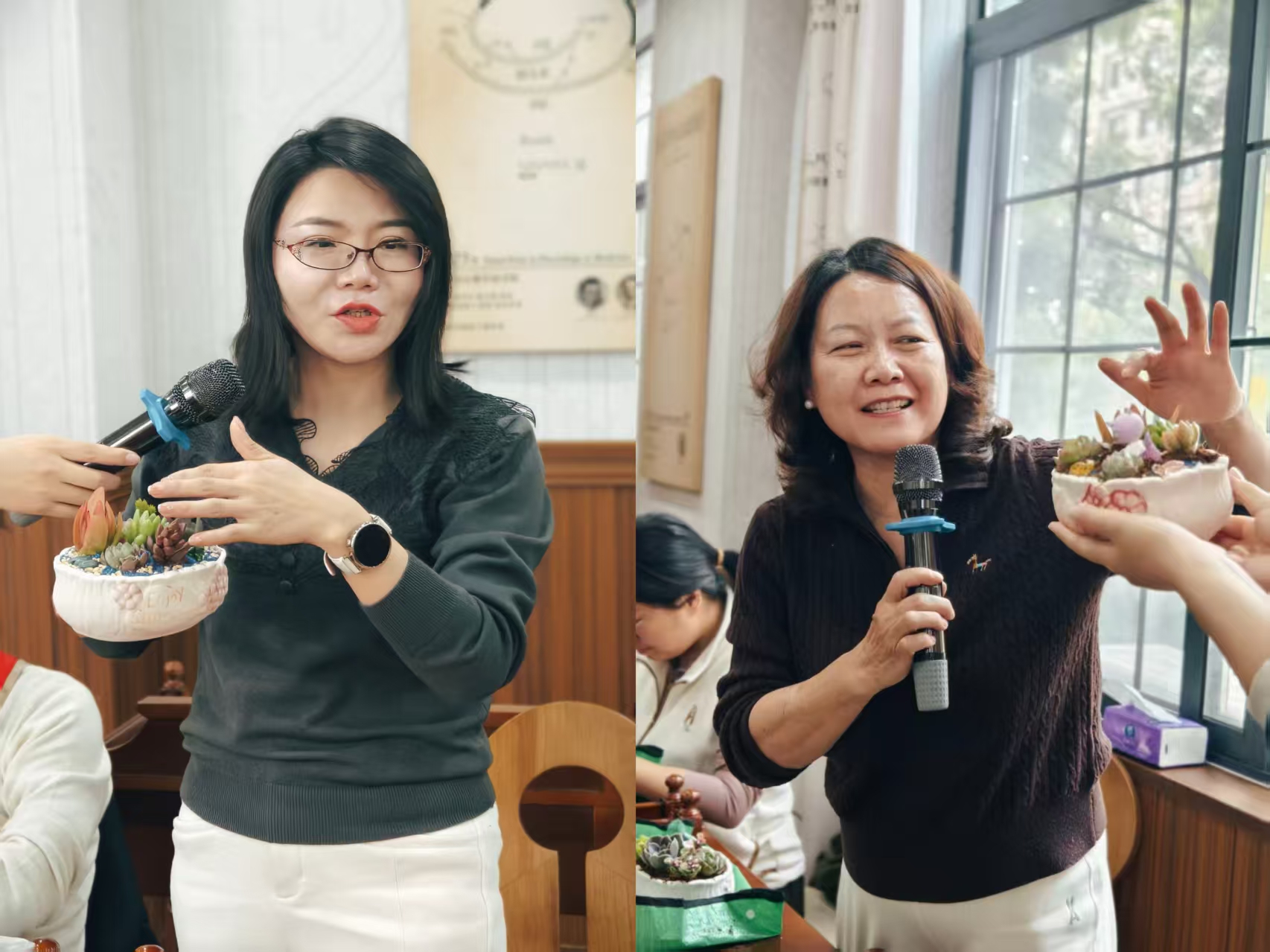 随后,专业园艺师进行现场演示,系统讲解多肉植物的常见品种特性、科学种植方法、盆土搭配技巧以及后期养护要点,并实时解答老师们的疑问。